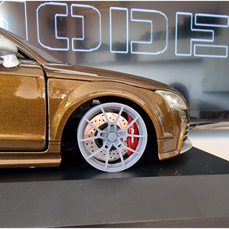 Perfect fit for your racing/drag models, even old school models. These 3D printed wheels are the equivalent of 18 inch in real life for 1/18 scale models.