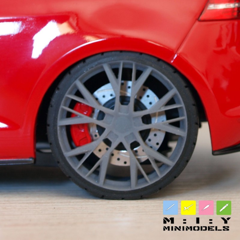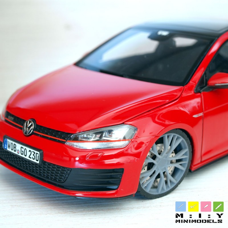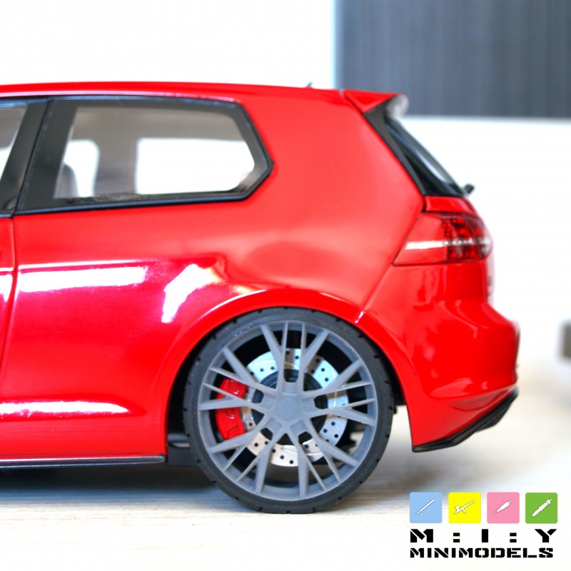 This set of wheels is the ultimate exquisite touch in changing Golf GTI model’s look. Measuring 30mm, the equivalent of 19 inch in real life, this wheel fits perfect the Golf 7 GTI from Norev or any other model, at your choice.